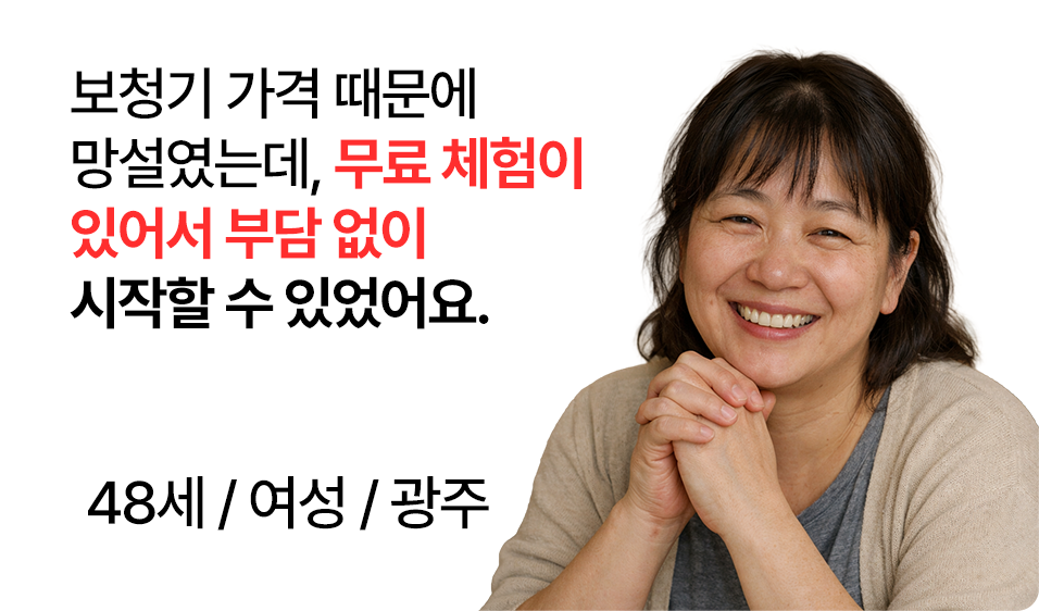 ※ 검사 및 상담 모두 무료로 진행되며, 구매 결정은 한달동안 무료 체험 후에 천천히 하셔도 됩니다.